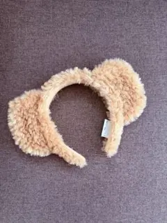 フェイクファーの耳付きカチューシャ、ベージュカラーで可愛らしいデザイン。