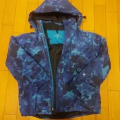 フード付きのスキーウェア、子ども用サイズ150黒と青と白のデザイン。