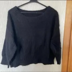 ナノユニバース Vネック長袖ニット セーター 綿混 ハイゲージ 上品 黒 F