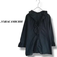 【NARACAMICIE】ナラカミーチェ ストライプ フリル付き長袖シャツ