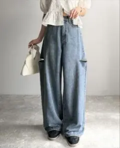 k0009 CLASSICALELF ゆったりハイウエストワイドストレートデニム