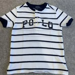 青と黒のポロシャツ、刺繍ロゴ付き。