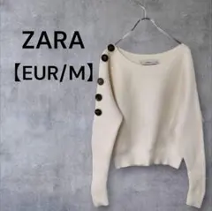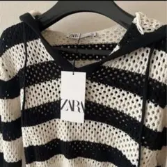 ZARA レース編みニットセーター ブラック ショート丈 L 長袖 ショート丈