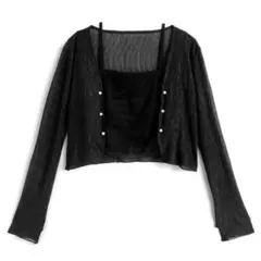 パッド入りカシュクールキャミソールxカーディガンアンサンブル at2319GRL