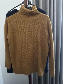 ジーユー ケーブル編みニットセーター L ブラック・グレー
