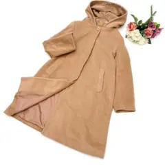 シンプルなベージュのロングコート、スタイリッシュなデザイン。