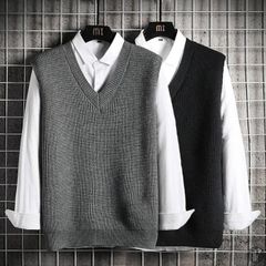 メンズ ベスト グレー カーディガンベスト ニットベスト 紳士服 古着 90s