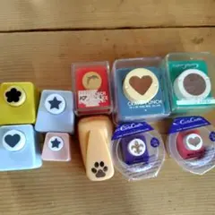 カラフルなアイコンのクラフトパンチセット、持ち運びに便利なケース付き。
