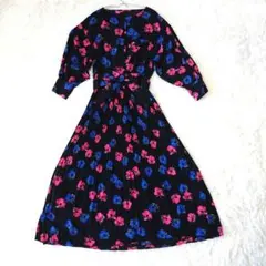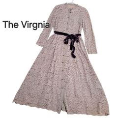 【ザヴァージニア】花柄 ロングワンピース 38 白 ギャザー フレア 長袖 M
