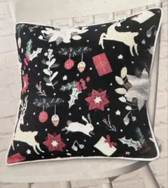 クリスマスツリーの刺繍が施されたクッションカバー。