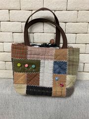 ハンドメイド バッグ 刺し子 トートバッグ パッチワーク ナチュラル ブラウン