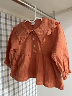 futafuta イエローチェック ブラウス 80