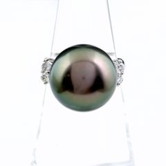 鑑定書付 高級ジュエリーPt900黒蝶真珠天然ダイヤモンド指輪