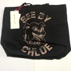 SEE BY CHLOE シーバイクロエ トートバッグ 肩掛け キャンバス レザー ブラック 黒色