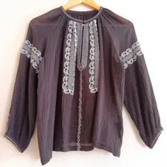 【美品】SLOBE IENA☆ジャガード袖ボリュームブラウス ライトベージュ