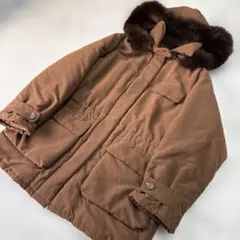 【トロワドゥアン】ファー付ダウンコート (4L相当) ブラウン系 たぬき