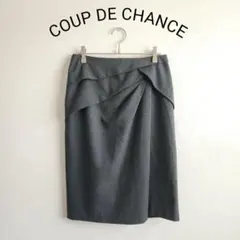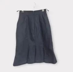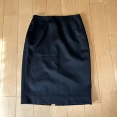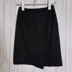 サテン風の黒いタイトスカート、フリルデザインでエレガントな印象。