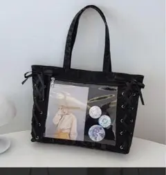 【匿名配送】痛バッグ ブラック リボン A4対応 痛バ 推し事 推し活//