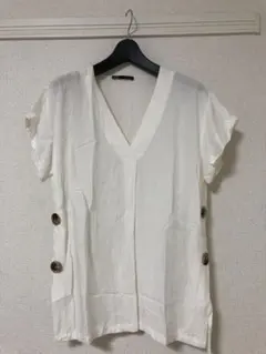 アイボリーのレース素材で、半袖デザインのZARA製トップス。