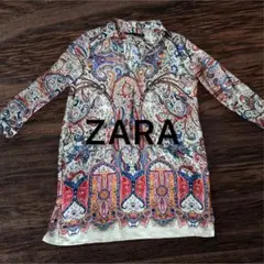 【良品】ザラ マキシ丈ワンピース フリル ペイズリー柄 フレア ロング丈 S