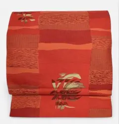 名古屋帯 鳥と風景の刺繍 オレンジ系