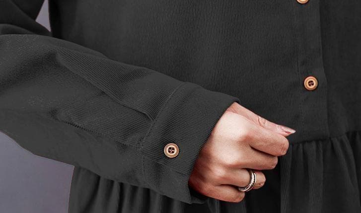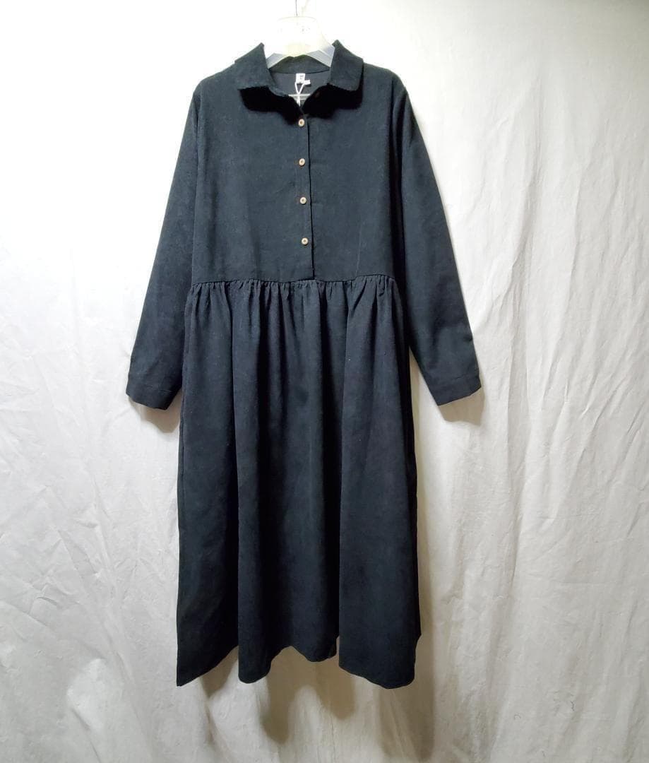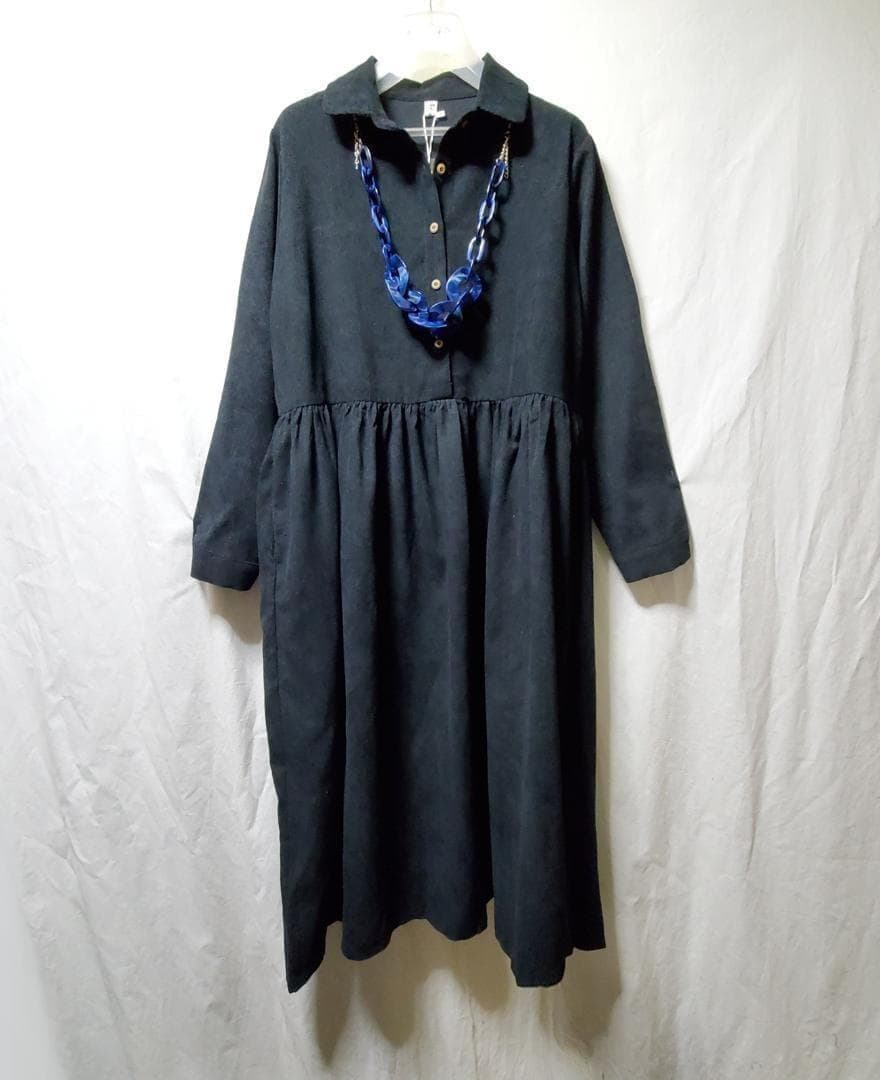 黒 ロングコーデュロイワンピース シャツワンピース 体型カバー 秋冬 モード系