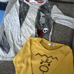 赤と白のストライプデザインの長袖カットソー、サイズ110。