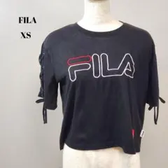 FILAのブラックTシャツ、バックに印象的なデザイン。