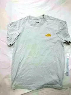 グレーのTHE NORTH FACE Tシャツ、イエローロゴプリントデザイン。