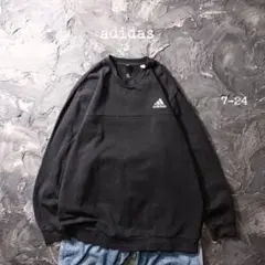 黒(少しネイビー)のadidasロゴ入りトレーナーです。