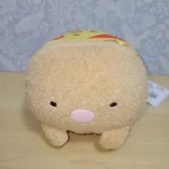 すみっコぐらしのかわいいベージュのマスコットキーチェーン。とんかつです。