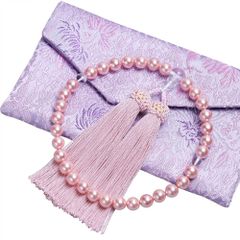 女性用 数珠 ピンク貝パール マグネット式数珠袋付 念珠 略式数珠