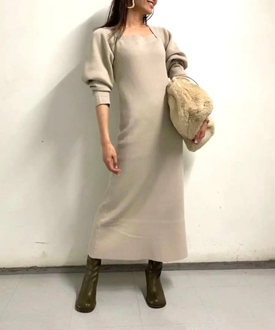 しなやかで美しいシルエットを際立たせる袖ボリュームニットワンピースDesign/Stylingボリュームスリーブがクラシカルムードを放つロングニットワンピース。