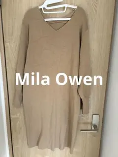 Mila Owen 袖ボリュームパワショルニットワンピース ロング アイボリー