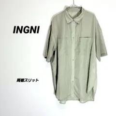 4753 【INGNI】シャツ ブラウス トップス ボタン 半袖 M ベージュ系