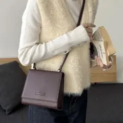 バーガンディのパイソンレザーショルダーバッグ、フロントポケット付きで実用的。