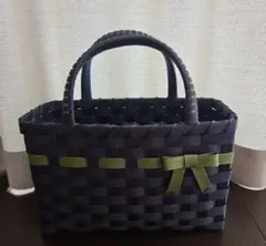 エコクラフトバンドのバッグ 菱出し模様(両面)のカゴバッグ (訳あり)