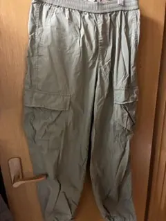 オリーブグリーンのSサイズカーゴパンツ、軽量で快適な素材。