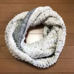 ファーとニットのスヌード、グレー。