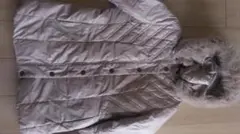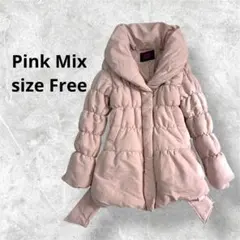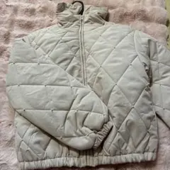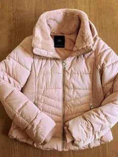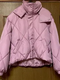 キルティングデザインのジップアップ中綿ジャケット、鮮やかなピンク色が特徴。