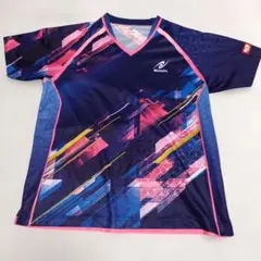 ブルーを基調とした総柄デザインに、ピンクのラインがアクセントになっていてとてもおしゃれです。試合や練習はもちろん、スポーツウェアとしてもおすすめです。