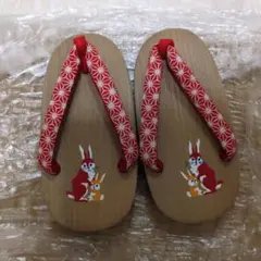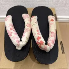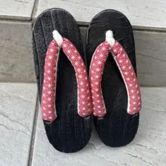 子供用草履・下駄 黒赤 花柄 二枚歯下駄