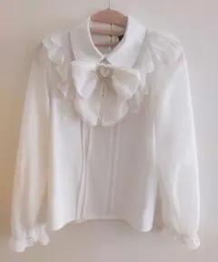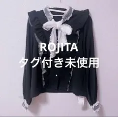 ロジータ フリル付き長袖ブラウス ホワイト×ブラック