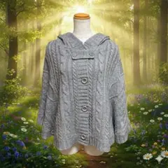 NEO 森ガール くるみボタン フード付き ケーブル ポンチョ ニット