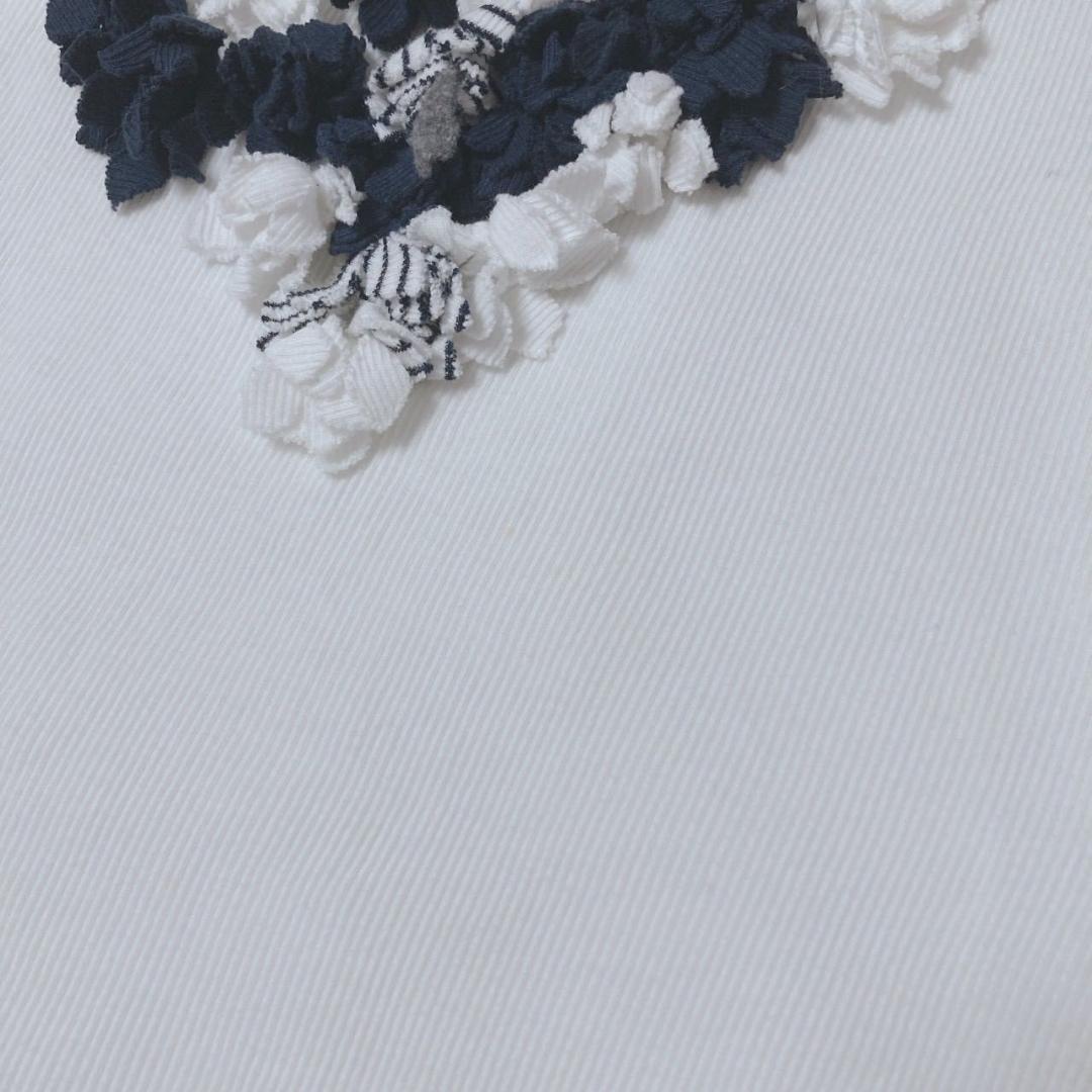 オットー カットソー リブニット Vネック 花柄 フリル メロウ ホワイト L