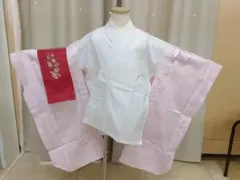 ピンクの七五三用着物、刺繍付きで華やか。