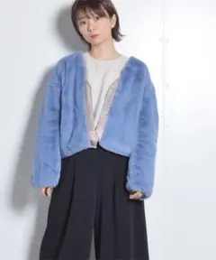 【LUCA】ふわふわフェイクファージャケット ブルー S.Regiment