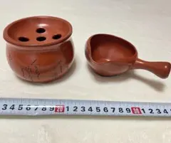 実家の整理中に見つけた常滑焼の朱色の茶こぼしと湯冷ましをまとめて出品します。