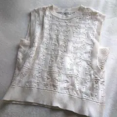 レプシィム リネン糸100% 緑 ニット ベスト 夏 重ね着 すずやか 楽ちん