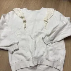 ミッキーマウスのロゴが特徴的なネイビーのトレーナー。